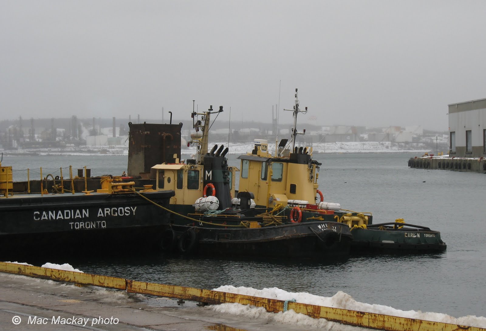 Sunday morning saw the tugs Whitby and Carl M at pier 24 with the dredge Canadian Argosy and the dump scow FDJV 2. A big blow the night before had called a halt to dredging operations off the Halterm container pier, and so it was a day for rest and repairs.