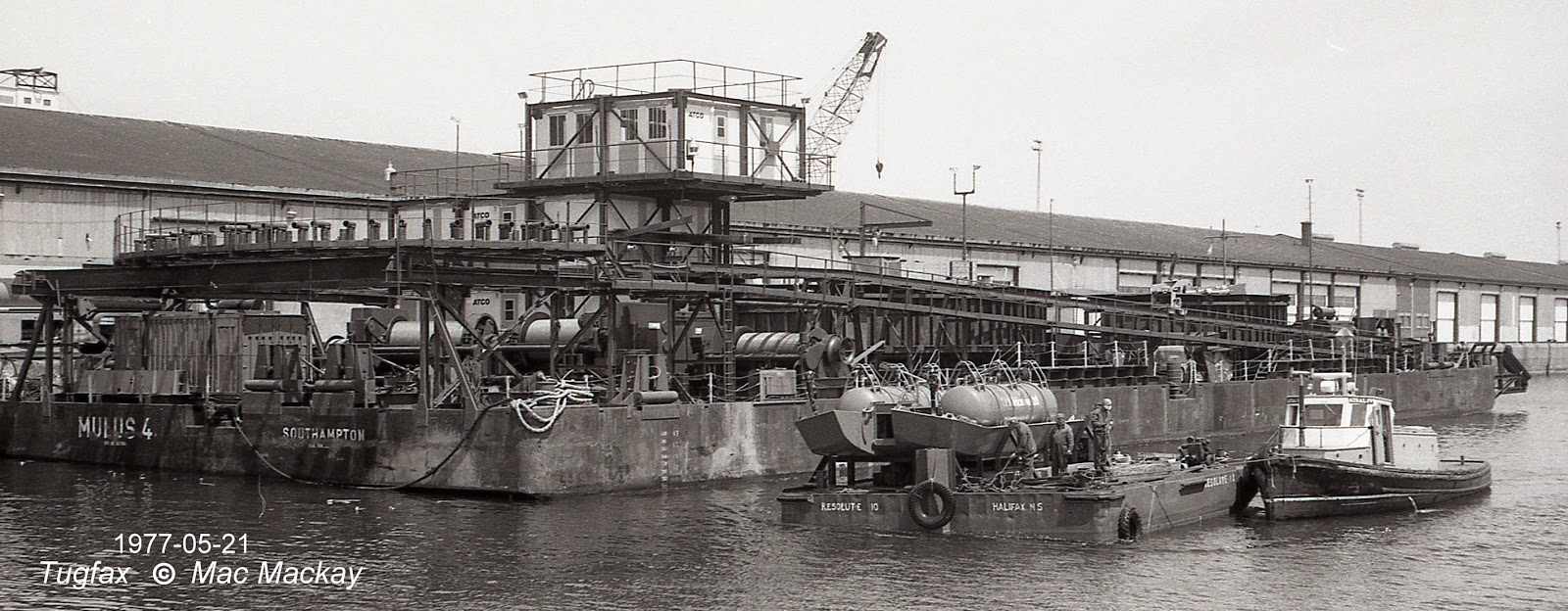 In December 1976 with the failure of the Shaheen operation, the four tugs were transferred to Halifax and placed under the management of ECTUG. Although suitable for berthing big tankers alongside oil docks, they were not ideally suited for working in the tight spaces between the finger piers of Halifax. Their steering nozzles and controllable pitch props were not very fast in response to rudder commands and so they were not used very intensively. Beside, Halifax was already well equipped with tugs as the above photos will attest.